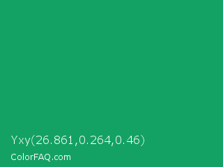 Yxy 26.861,0.264,0.46 Color is a normal green color and the nearest color is Green Haze #01a368. Hex code #13a263 and RGB value is rgb(19,162,99). In RGB color space, this color is composed of 7% red, 64% green, 39% blue, In CMYK color space, this color is composed of 88% cyan, 0% magenta, 39% yellow , 36% black , In HSL color space, this color has a hue angle of 154° , 79% saturation and 35% lightness.