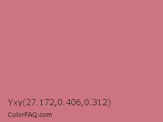 Yxy 27.172,0.406,0.312 Color is a light red color and the nearest color is Old Rose #c08081. Hex code #cc7582 and RGB value is rgb(204,117,130). In RGB color space, this color is composed of 80% red, 46% green, 51% blue, In CMYK color space, this color is composed of 0% cyan, 43% magenta, 36% yellow , 20% black , In HSL color space, this color has a hue angle of 351° , 46% saturation and 63% lightness.
