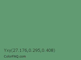 Yxy 27.176,0.295,0.408 Color is a normal green color and the nearest color is Aqua Forest #5fa777. Hex code #619b71 and RGB value is rgb(97,155,113). In RGB color space, this color is composed of 38% red, 61% green, 44% blue, In CMYK color space, this color is composed of 37% cyan, 0% magenta, 27% yellow , 39% black , In HSL color space, this color has a hue angle of 137° , 23% saturation and 49% lightness.