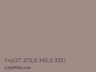 Yxy 27.372,0.342,0.335 Color is a normal red color and the nearest color is Pharlap #a3807b. Hex code #a08a86 and RGB value is rgb(160,138,134). In RGB color space, this color is composed of 63% red, 54% green, 53% blue, In CMYK color space, this color is composed of 0% cyan, 14% magenta, 16% yellow , 37% black , In HSL color space, this color has a hue angle of 9° , 12% saturation and 58% lightness.