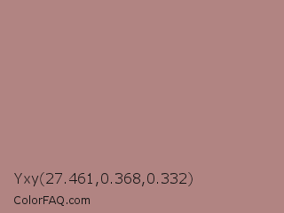 Yxy 27.461,0.368,0.332 Color is a normal red color and the nearest color is Brandy Rose #bb8983. Hex code #b18482 and RGB value is rgb(177,132,130). In RGB color space, this color is composed of 69% red, 52% green, 51% blue, In CMYK color space, this color is composed of 0% cyan, 25% magenta, 27% yellow , 31% black , In HSL color space, this color has a hue angle of 3° , 23% saturation and 60% lightness.