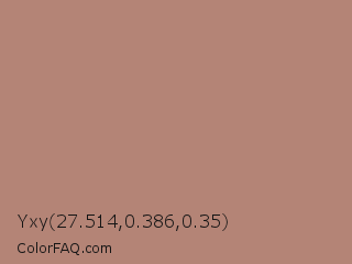 Yxy 27.514,0.386,0.35 Color is a normal red color and the nearest color is Light Taupe #b38b6d. Hex code #b48476 and RGB value is rgb(180,132,118). In RGB color space, this color is composed of 71% red, 52% green, 46% blue, In CMYK color space, this color is composed of 0% cyan, 27% magenta, 34% yellow , 29% black , In HSL color space, this color has a hue angle of 14° , 29% saturation and 58% lightness.