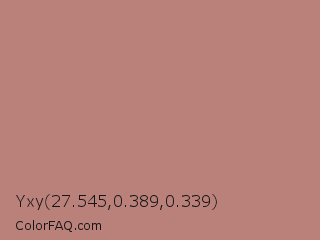 Yxy 27.545,0.389,0.339 Color is a normal red color and the nearest color is Old Rose #c08081. Hex code #ba817a and RGB value is rgb(186,129,122). In RGB color space, this color is composed of 73% red, 51% green, 48% blue, In CMYK color space, this color is composed of 0% cyan, 31% magenta, 34% yellow , 27% black , In HSL color space, this color has a hue angle of 7° , 32% saturation and 60% lightness.
