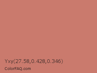 Yxy 27.58,0.428,0.346 Color is a light red color and the nearest color is Contessa #c6726b. Hex code #ca7a6d and RGB value is rgb(202,122,109). In RGB color space, this color is composed of 79% red, 48% green, 43% blue, In CMYK color space, this color is composed of 0% cyan, 40% magenta, 46% yellow , 21% black , In HSL color space, this color has a hue angle of 8° , 47% saturation and 61% lightness.