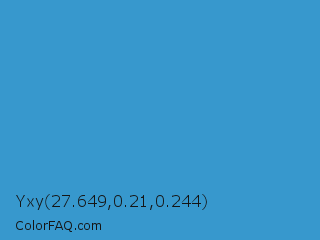 Yxy 27.649,0.21,0.244 Color is a normal blue color and the nearest color is Celestial Blue #4997d0. Hex code #3798cd and RGB value is rgb(55,152,205). In RGB color space, this color is composed of 22% red, 60% green, 80% blue, In CMYK color space, this color is composed of 73% cyan, 26% magenta, 0% yellow , 20% black , In HSL color space, this color has a hue angle of 201° , 60% saturation and 51% lightness.