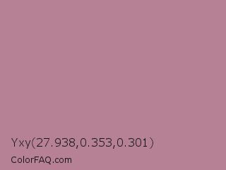 Yxy 27.938,0.353,0.301 Color is a light rose color and the nearest color is English Lavender #b48395. Hex code #b78195 and RGB value is rgb(183,129,149). In RGB color space, this color is composed of 72% red, 51% green, 58% blue, In CMYK color space, this color is composed of 0% cyan, 30% magenta, 19% yellow , 28% black , In HSL color space, this color has a hue angle of 338° , 27% saturation and 61% lightness.