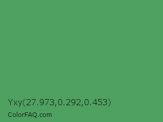 Yxy 27.973,0.292,0.453 Color is a normal green color and the nearest color is Fruit Salad #4f9d5d. Hex code #4ea161 and RGB value is rgb(78,161,97). In RGB color space, this color is composed of 31% red, 63% green, 38% blue, In CMYK color space, this color is composed of 52% cyan, 0% magenta, 40% yellow , 37% black , In HSL color space, this color has a hue angle of 134° , 35% saturation and 47% lightness.