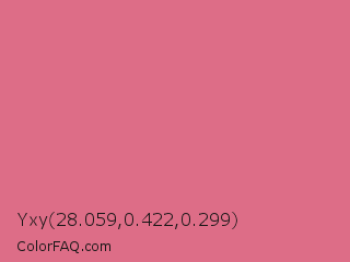 Yxy 28.059,0.422,0.299 Color is a light red color and the nearest color is Pale Red Violet #db7093. Hex code #dd6d87 and RGB value is rgb(221,109,135). In RGB color space, this color is composed of 87% red, 43% green, 53% blue, In CMYK color space, this color is composed of 0% cyan, 51% magenta, 39% yellow , 13% black , In HSL color space, this color has a hue angle of 346° , 62% saturation and 65% lightness.
