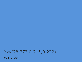 Yxy 28.373,0.215,0.222 Color is a normal blue color and the nearest color is Havelock Blue #5590d9. Hex code #5794dc and RGB value is rgb(87,148,220). In RGB color space, this color is composed of 34% red, 58% green, 86% blue, In CMYK color space, this color is composed of 60% cyan, 33% magenta, 0% yellow , 14% black , In HSL color space, this color has a hue angle of 212° , 66% saturation and 60% lightness.