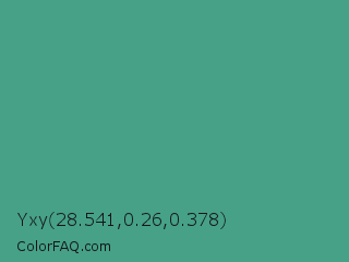Yxy 28.541,0.26,0.378 Color is a normal green color and the nearest color is Zomp #39a78e. Hex code #46a187 and RGB value is rgb(70,161,135). In RGB color space, this color is composed of 27% red, 63% green, 53% blue, In CMYK color space, this color is composed of 57% cyan, 0% magenta, 16% yellow , 37% black , In HSL color space, this color has a hue angle of 163° , 39% saturation and 45% lightness.