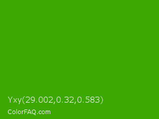 Yxy 29.002,0.32,0.583 Color is a normal green color and the nearest color is Kelly Green #4cbb17. Hex code #3da802 and RGB value is rgb(61,168,2). In RGB color space, this color is composed of 24% red, 66% green, 1% blue, In CMYK color space, this color is composed of 64% cyan, 0% magenta, 99% yellow , 34% black , In HSL color space, this color has a hue angle of 99° , 98% saturation and 33% lightness.