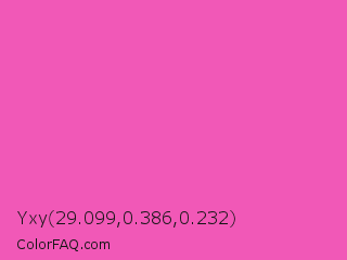 Yxy 29.099,0.386,0.232 Color is a light magenta color and the nearest color is Brilliant Rose #f653a6. Hex code #f158b7 and RGB value is rgb(241,88,183). In RGB color space, this color is composed of 95% red, 35% green, 72% blue, In CMYK color space, this color is composed of 0% cyan, 63% magenta, 24% yellow , 5% black , In HSL color space, this color has a hue angle of 323° , 85% saturation and 65% lightness.