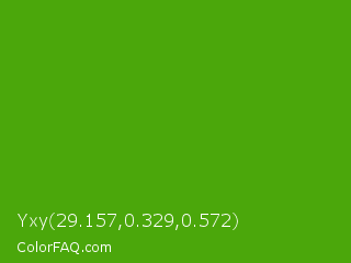 Yxy 29.157,0.329,0.572 Color is a normal green color and the nearest color is Kelly Green #4cbb17. Hex code #4ba70b and RGB value is rgb(75,167,11). In RGB color space, this color is composed of 29% red, 65% green, 4% blue, In CMYK color space, this color is composed of 55% cyan, 0% magenta, 93% yellow , 35% black , In HSL color space, this color has a hue angle of 95° , 88% saturation and 35% lightness.