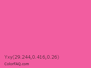 Yxy 29.244,0.416,0.26 Color is a light rose color and the nearest color is Brilliant Rose #f653a6. Hex code #f25da0 and RGB value is rgb(242,93,160). In RGB color space, this color is composed of 95% red, 36% green, 63% blue, In CMYK color space, this color is composed of 0% cyan, 62% magenta, 34% yellow , 5% black , In HSL color space, this color has a hue angle of 333° , 85% saturation and 66% lightness.