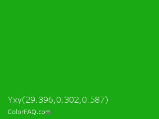 Yxy 29.396,0.302,0.587 Color is a normal green color and the nearest color is Slimy Green #299617. Hex code #1aab14 and RGB value is rgb(26,171,20). In RGB color space, this color is composed of 10% red, 67% green, 8% blue, In CMYK color space, this color is composed of 85% cyan, 0% magenta, 88% yellow , 33% black , In HSL color space, this color has a hue angle of 118° , 79% saturation and 37% lightness.
