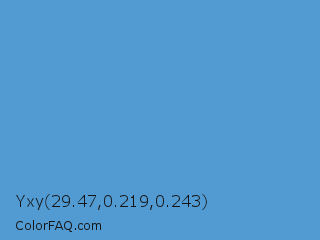 Yxy 29.47,0.219,0.243 Color is a normal blue color and the nearest color is Carolina Blue #56a0d3. Hex code #519ad2 and RGB value is rgb(81,154,210). In RGB color space, this color is composed of 32% red, 60% green, 82% blue, In CMYK color space, this color is composed of 61% cyan, 27% magenta, 0% yellow , 18% black , In HSL color space, this color has a hue angle of 206° , 59% saturation and 57% lightness.