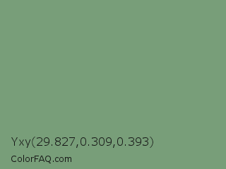 Yxy 29.827,0.309,0.393 Color is a normal green color and the nearest color is Amulet #7b9f80. Hex code #789e79 and RGB value is rgb(120,158,121). In RGB color space, this color is composed of 47% red, 62% green, 47% blue, In CMYK color space, this color is composed of 24% cyan, 0% magenta, 23% yellow , 38% black , In HSL color space, this color has a hue angle of 122° , 16% saturation and 55% lightness.