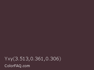 Yxy 3.513,0.361,0.306 Color is a dark rose color and the nearest color is Woody Brown #483131. Hex code #462e35 and RGB value is rgb(70,46,53). In RGB color space, this color is composed of 27% red, 18% green, 21% blue, In CMYK color space, this color is composed of 0% cyan, 34% magenta, 24% yellow , 73% black , In HSL color space, this color has a hue angle of 343° , 21% saturation and 23% lightness.