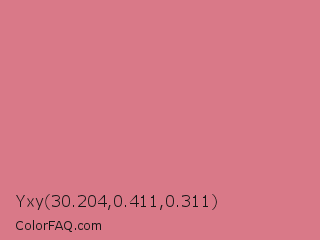 Yxy 30.204,0.411,0.311 Color is a light red color and the nearest color is New York Pink #d7837f. Hex code #d97988 and RGB value is rgb(217,121,136). In RGB color space, this color is composed of 85% red, 47% green, 53% blue, In CMYK color space, this color is composed of 0% cyan, 44% magenta, 37% yellow , 15% black , In HSL color space, this color has a hue angle of 351° , 56% saturation and 66% lightness.