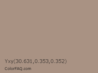 Yxy 30.631,0.353,0.352 Color is a normal orange color and the nearest color is Grullo #a99a86. Hex code #a99283 and RGB value is rgb(169,146,131). In RGB color space, this color is composed of 66% red, 57% green, 51% blue, In CMYK color space, this color is composed of 0% cyan, 14% magenta, 22% yellow , 34% black , In HSL color space, this color has a hue angle of 24° , 18% saturation and 59% lightness.
