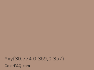 Yxy 30.774,0.369,0.357 Color is a normal orange color and the nearest color is Sandrift #ab917a. Hex code #b1907d and RGB value is rgb(177,144,125). In RGB color space, this color is composed of 69% red, 56% green, 49% blue, In CMYK color space, this color is composed of 0% cyan, 19% magenta, 29% yellow , 31% black , In HSL color space, this color has a hue angle of 22° , 25% saturation and 59% lightness.