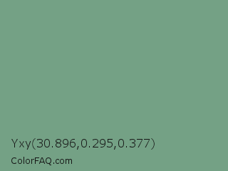 Yxy 30.896,0.295,0.377 Color is a normal green color and the nearest color is Oxley #779e86. Hex code #74a185 and RGB value is rgb(116,161,133). In RGB color space, this color is composed of 45% red, 63% green, 52% blue, In CMYK color space, this color is composed of 28% cyan, 0% magenta, 17% yellow , 37% black , In HSL color space, this color has a hue angle of 143° , 19% saturation and 54% lightness.
