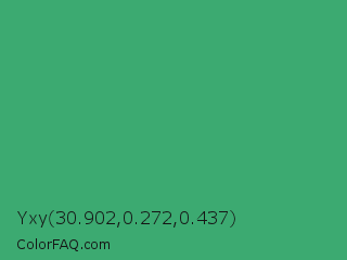 Yxy 30.902,0.272,0.437 Color is a normal green color and the nearest color is Ocean Green #41aa78. Hex code #3caa71 and RGB value is rgb(60,170,113). In RGB color space, this color is composed of 24% red, 67% green, 44% blue, In CMYK color space, this color is composed of 65% cyan, 0% magenta, 34% yellow , 33% black , In HSL color space, this color has a hue angle of 149° , 48% saturation and 45% lightness.