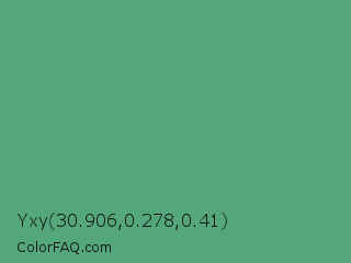 Yxy 30.906,0.278,0.41 Color is a normal green color and the nearest color is Shiny Shamrock #5fa778. Hex code #53a77b and RGB value is rgb(83,167,123). In RGB color space, this color is composed of 33% red, 65% green, 48% blue, In CMYK color space, this color is composed of 50% cyan, 0% magenta, 26% yellow , 35% black , In HSL color space, this color has a hue angle of 149° , 34% saturation and 49% lightness.