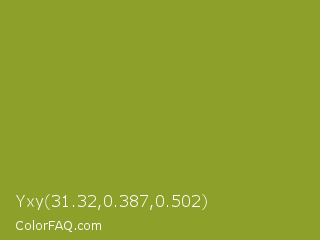 Yxy 31.32,0.387,0.502 Color is a normal yellow color and the nearest color is Sushi #87ab39. Hex code #8da12a and RGB value is rgb(141,161,42). In RGB color space, this color is composed of 55% red, 63% green, 16% blue, In CMYK color space, this color is composed of 12% cyan, 0% magenta, 74% yellow , 37% black , In HSL color space, this color has a hue angle of 70° , 59% saturation and 40% lightness.