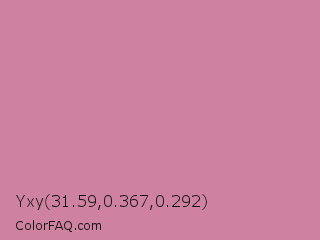 Yxy 31.59,0.367,0.292 Color is a light rose color and the nearest color is Puce #cc8899. Hex code #ce829f and RGB value is rgb(206,130,159). In RGB color space, this color is composed of 81% red, 51% green, 62% blue, In CMYK color space, this color is composed of 0% cyan, 37% magenta, 23% yellow , 19% black , In HSL color space, this color has a hue angle of 337° , 44% saturation and 66% lightness.