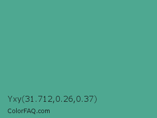 Yxy 31.712,0.26,0.37 Color is a normal cyan color and the nearest color is Polished Pine #5da493. Hex code #4ea891 and RGB value is rgb(78,168,145). In RGB color space, this color is composed of 31% red, 66% green, 57% blue, In CMYK color space, this color is composed of 54% cyan, 0% magenta, 14% yellow , 34% black , In HSL color space, this color has a hue angle of 165° , 37% saturation and 48% lightness.