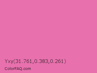 Yxy 31.761,0.383,0.261 Color is a light rose color and the nearest color is Thulian Pink #de6fa1. Hex code #e870ad and RGB value is rgb(232,112,173). In RGB color space, this color is composed of 91% red, 44% green, 68% blue, In CMYK color space, this color is composed of 0% cyan, 52% magenta, 25% yellow , 9% black , In HSL color space, this color has a hue angle of 330° , 72% saturation and 67% lightness.