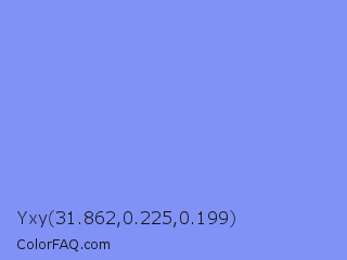 Yxy 31.862,0.225,0.199 Color is a light blue color and the nearest color is Portage #8b9fee. Hex code #8192f7 and RGB value is rgb(129,146,247). In RGB color space, this color is composed of 51% red, 57% green, 97% blue, In CMYK color space, this color is composed of 48% cyan, 41% magenta, 0% yellow , 3% black , In HSL color space, this color has a hue angle of 231° , 88% saturation and 74% lightness.