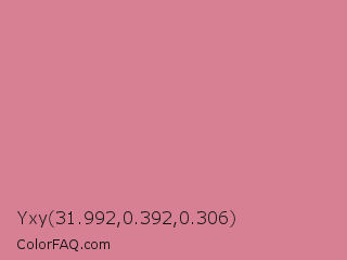 Yxy 31.992,0.392,0.306 Color is a light red color and the nearest color is Shimmering Blush #d98695. Hex code #d78093 and RGB value is rgb(215,128,147). In RGB color space, this color is composed of 84% red, 50% green, 58% blue, In CMYK color space, this color is composed of 0% cyan, 40% magenta, 32% yellow , 16% black , In HSL color space, this color has a hue angle of 347° , 52% saturation and 67% lightness.