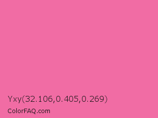 Yxy 32.106,0.405,0.269 Color is a light rose color and the nearest color is Cyclamen #f56fa1. Hex code #f16ca4 and RGB value is rgb(241,108,164). In RGB color space, this color is composed of 95% red, 42% green, 64% blue, In CMYK color space, this color is composed of 0% cyan, 55% magenta, 32% yellow , 5% black , In HSL color space, this color has a hue angle of 335° , 83% saturation and 68% lightness.