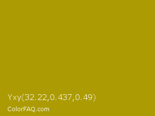 Yxy 32.22,0.437,0.49 Color is a normal yellow color and the nearest color is Sahara #b7a214. Hex code #ac9b03 and RGB value is rgb(172,155,3). In RGB color space, this color is composed of 67% red, 61% green, 1% blue, In CMYK color space, this color is composed of 0% cyan, 10% magenta, 98% yellow , 33% black , In HSL color space, this color has a hue angle of 54° , 97% saturation and 34% lightness.