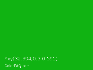 Yxy 32.394,0.3,0.591 Color is a normal green color and the nearest color is Slimy Green #299617. Hex code #10b312 and RGB value is rgb(16,179,18). In RGB color space, this color is composed of 6% red, 70% green, 7% blue, In CMYK color space, this color is composed of 91% cyan, 0% magenta, 90% yellow , 30% black , In HSL color space, this color has a hue angle of 121° , 84% saturation and 38% lightness.