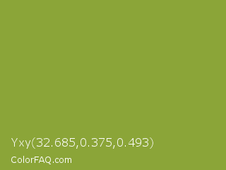 Yxy 32.685,0.375,0.493 Color is a normal lime color and the nearest color is Sushi #87ab39. Hex code #8ba538 and RGB value is rgb(139,165,56). In RGB color space, this color is composed of 55% red, 65% green, 22% blue, In CMYK color space, this color is composed of 16% cyan, 0% magenta, 66% yellow , 35% black , In HSL color space, this color has a hue angle of 74° , 49% saturation and 43% lightness.
