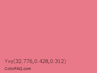 Yxy 32.776,0.428,0.312 Color is a light red color and the nearest color is Light Coral #f08080. Hex code #e97988 and RGB value is rgb(233,121,136). In RGB color space, this color is composed of 91% red, 47% green, 53% blue, In CMYK color space, this color is composed of 0% cyan, 48% magenta, 42% yellow , 9% black , In HSL color space, this color has a hue angle of 352° , 72% saturation and 69% lightness.