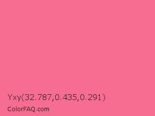 Yxy 32.787,0.435,0.291 Color is a light rose color and the nearest color is Light Crimson #f56991. Hex code #f76d92 and RGB value is rgb(247,109,146). In RGB color space, this color is composed of 97% red, 43% green, 57% blue, In CMYK color space, this color is composed of 0% cyan, 56% magenta, 41% yellow , 3% black , In HSL color space, this color has a hue angle of 344° , 90% saturation and 70% lightness.