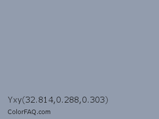 Yxy 32.814,0.288,0.303 Color is a light blue color and the nearest color is Manatee #979aaa. Hex code #929cad and RGB value is rgb(146,156,173). In RGB color space, this color is composed of 57% red, 61% green, 68% blue, In CMYK color space, this color is composed of 16% cyan, 10% magenta, 0% yellow , 32% black , In HSL color space, this color has a hue angle of 218° , 14% saturation and 63% lightness.