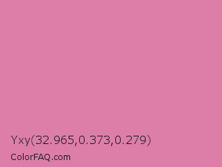 Yxy 32.965,0.373,0.279 Color is a light rose color and the nearest color is Middle Purple #d982b5. Hex code #dc7ea8 and RGB value is rgb(220,126,168). In RGB color space, this color is composed of 86% red, 49% green, 66% blue, In CMYK color space, this color is composed of 0% cyan, 43% magenta, 24% yellow , 14% black , In HSL color space, this color has a hue angle of 333° , 57% saturation and 68% lightness.