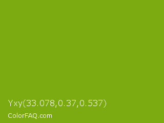 Yxy 33.078,0.37,0.537 Color is a normal lime color and the nearest color is Lima #76bd17. Hex code #7caa11 and RGB value is rgb(124,170,17). In RGB color space, this color is composed of 49% red, 67% green, 7% blue, In CMYK color space, this color is composed of 27% cyan, 0% magenta, 90% yellow , 33% black , In HSL color space, this color has a hue angle of 78° , 82% saturation and 37% lightness.