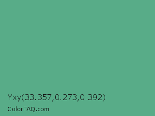 Yxy 33.357,0.273,0.392 Color is a normal green color and the nearest color is Polished Pine #5da493. Hex code #58ac88 and RGB value is rgb(88,172,136). In RGB color space, this color is composed of 35% red, 67% green, 53% blue, In CMYK color space, this color is composed of 49% cyan, 0% magenta, 21% yellow , 33% black , In HSL color space, this color has a hue angle of 154° , 34% saturation and 51% lightness.