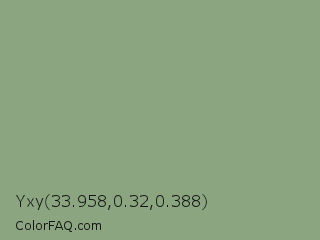 Yxy 33.958,0.32,0.388 Color is a normal green color and the nearest color is Envy #8ba690. Hex code #8ba580 and RGB value is rgb(139,165,128). In RGB color space, this color is composed of 55% red, 65% green, 50% blue, In CMYK color space, this color is composed of 16% cyan, 0% magenta, 22% yellow , 35% black , In HSL color space, this color has a hue angle of 102° , 17% saturation and 57% lightness.