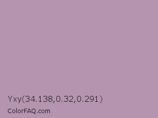 Yxy 34.138,0.32,0.291 Color is a light magenta color and the nearest color is Lilac Luster #ae98aa. Hex code #b594b0 and RGB value is rgb(181,148,176). In RGB color space, this color is composed of 71% red, 58% green, 69% blue, In CMYK color space, this color is composed of 0% cyan, 18% magenta, 3% yellow , 29% black , In HSL color space, this color has a hue angle of 309° , 18% saturation and 65% lightness.