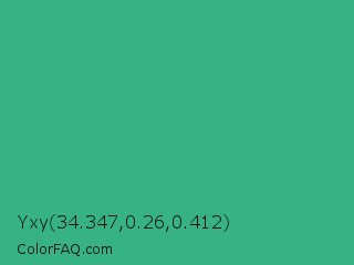 Yxy 34.347,0.26,0.412 Color is a normal green color and the nearest color is Mint #3eb489. Hex code #37b284 and RGB value is rgb(55,178,132). In RGB color space, this color is composed of 22% red, 70% green, 52% blue, In CMYK color space, this color is composed of 69% cyan, 0% magenta, 26% yellow , 30% black , In HSL color space, this color has a hue angle of 158° , 53% saturation and 46% lightness.