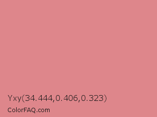 Yxy 34.444,0.406,0.323 Color is a light red color and the nearest color is Shimmering Blush #d98695. Hex code #de868b and RGB value is rgb(222,134,139). In RGB color space, this color is composed of 87% red, 53% green, 55% blue, In CMYK color space, this color is composed of 0% cyan, 40% magenta, 37% yellow , 13% black , In HSL color space, this color has a hue angle of 357° , 57% saturation and 70% lightness.