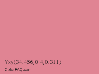 Yxy 34.456,0.4,0.311 Color is a light red color and the nearest color is Shimmering Blush #d98695. Hex code #e08493 and RGB value is rgb(224,132,147). In RGB color space, this color is composed of 88% red, 52% green, 58% blue, In CMYK color space, this color is composed of 0% cyan, 41% magenta, 34% yellow , 12% black , In HSL color space, this color has a hue angle of 350° , 60% saturation and 70% lightness.