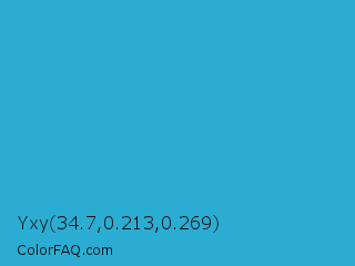 Yxy 34.7,0.213,0.269 Color is a normal blue color and the nearest color is Ball Blue #21abcd. Hex code #2bacd3 and RGB value is rgb(43,172,211). In RGB color space, this color is composed of 17% red, 67% green, 83% blue, In CMYK color space, this color is composed of 80% cyan, 18% magenta, 0% yellow , 17% black , In HSL color space, this color has a hue angle of 194° , 66% saturation and 50% lightness.